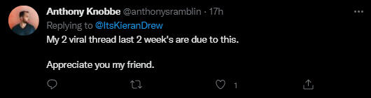 I started writing recently and spent months going nowhere. Kieran's advice changed the game. After a few weeks I had my first taste of virality and have since written threads that got 5,000-14,000 likes. I'm coming up to 6000 followers in 4 months. I can't believe how easy this made the writing process.
