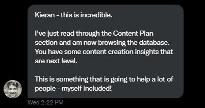 "This is an incredibly valuable resource that you've put together. The content plan is packed with gems. And I really like the content pillars. I've been in this game for quite a while now. Still, I picked up quite a few things that I'm excited to try out. And the viral database is an unlimited source of inspiration