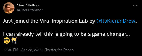 "The Viral Inspiration Lab contains everything Kieran knows. He doesn't hold anything back. This is honest, authentic advice, backed up with a database of hundreds of successful tweets that you can use for inspiration to write your own.Kieran's done everything for you. All you have to do is put in the work."